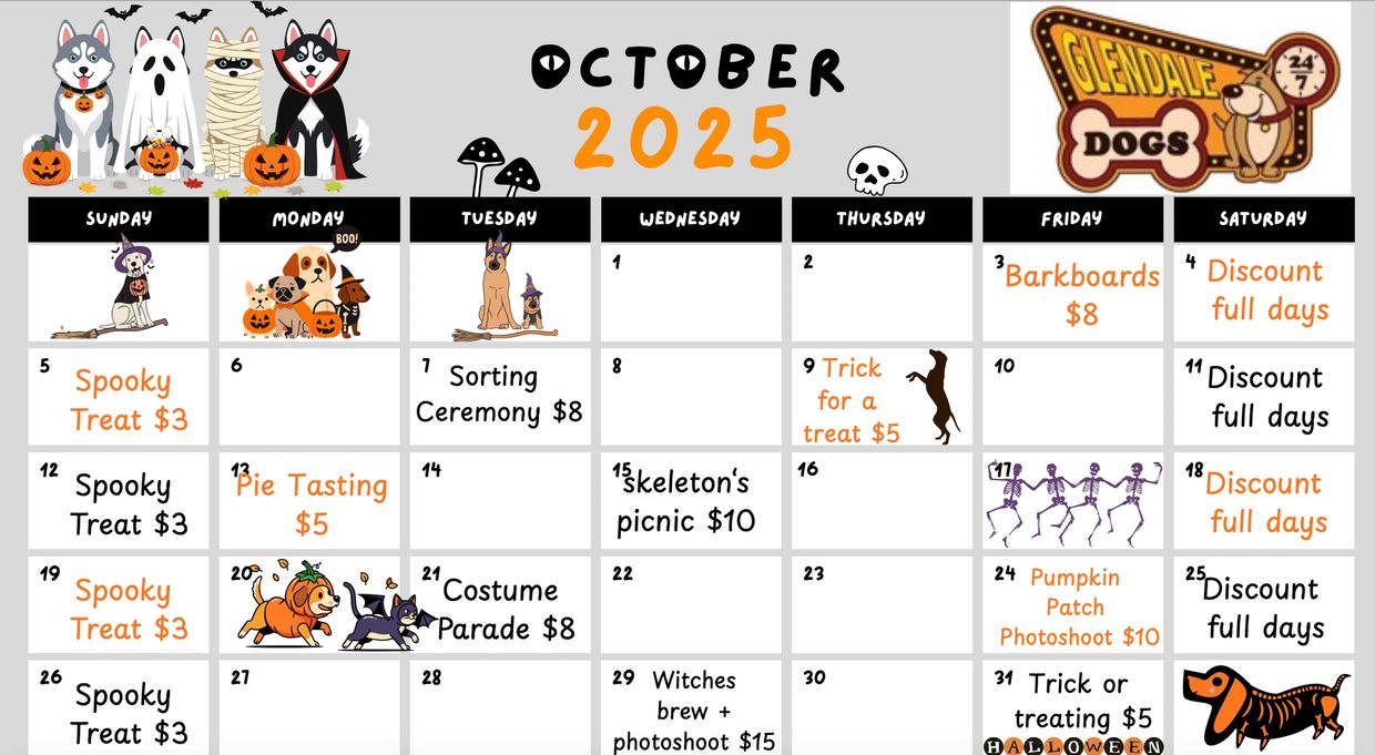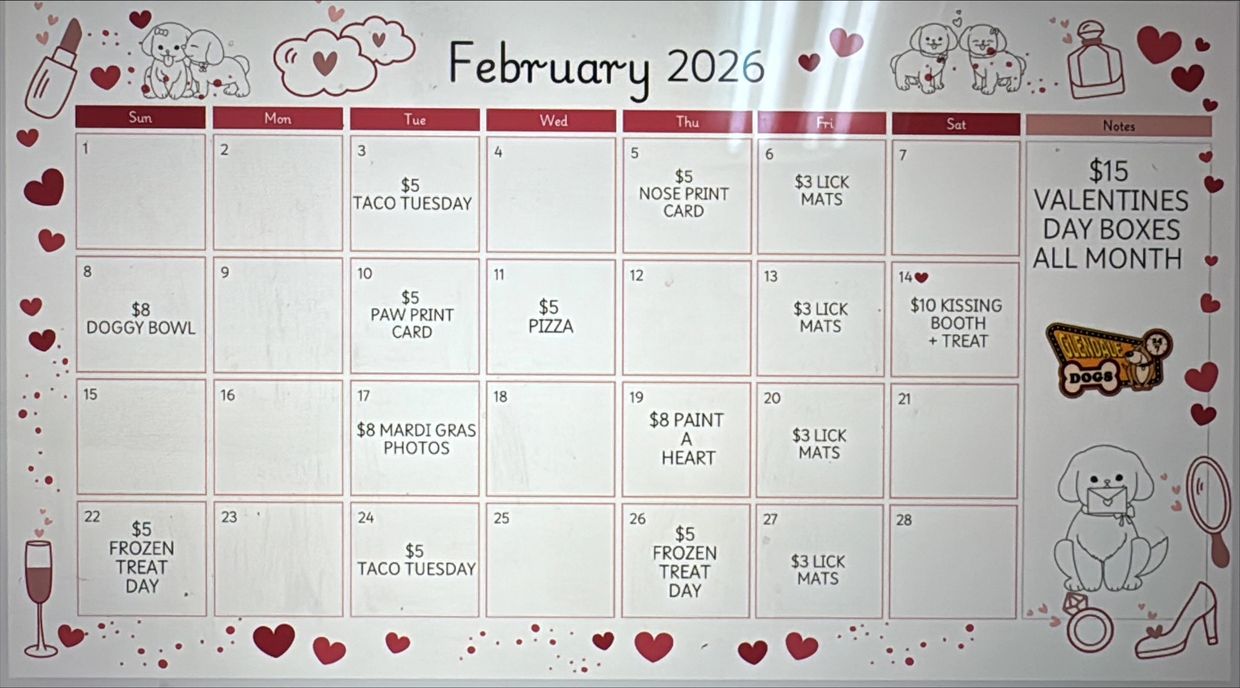 Contact us to get a fun event added to your pups daycare or boarding stay!